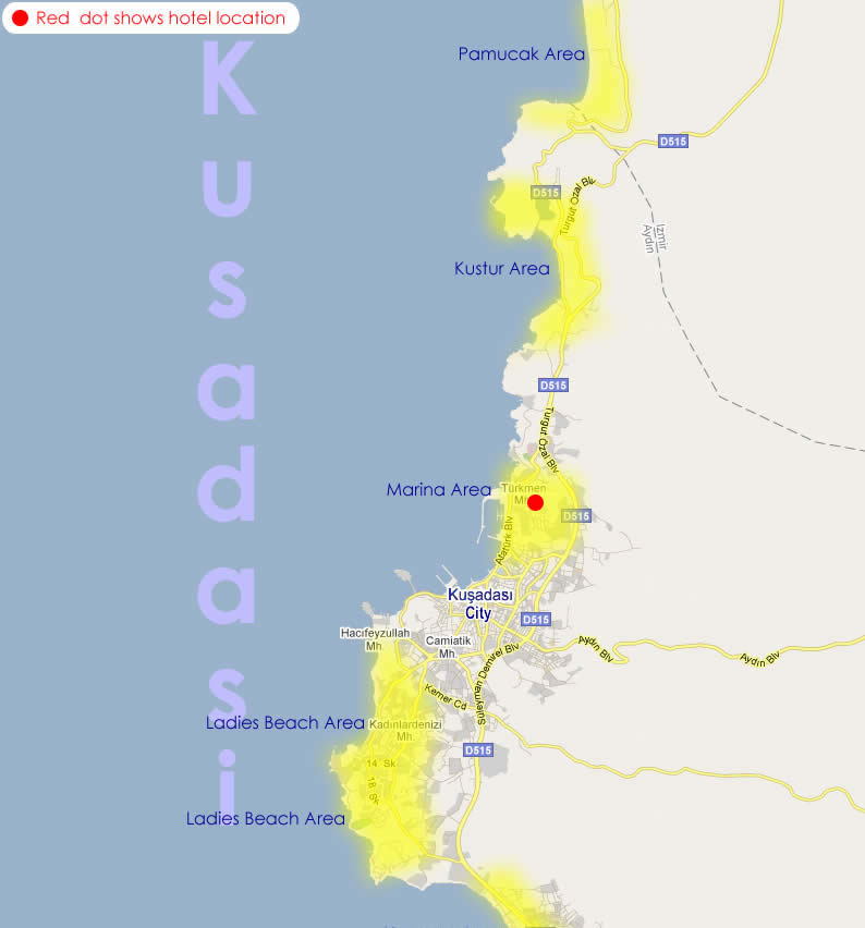 Kusadasi, it is just 150 metres to the public beach and 1.5 km to the